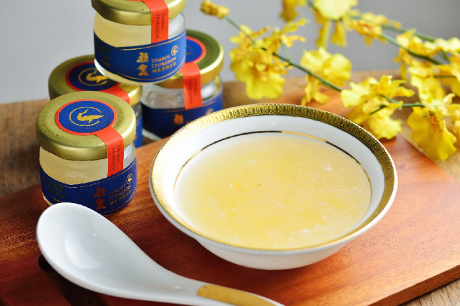 「鱘寶鱘龍魚精」,高品質鱘龍魚,製作過程中不額外添加刺激性調味,保留魚類本身的營養特性,質地細緻、口感滑順,對於牙口不佳或吞嚥能力下降的長輩而言,相對容易入口。