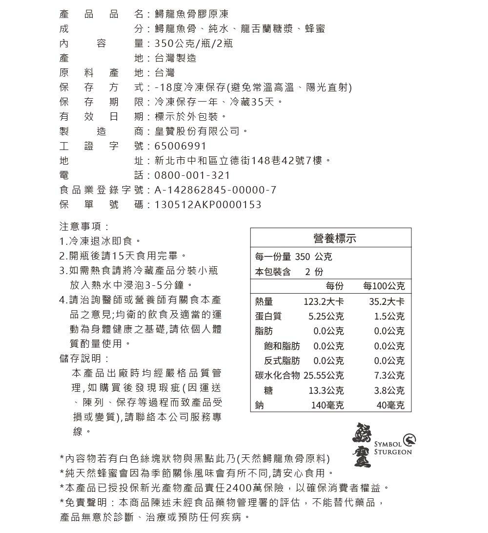 冷凍-【黃教練限定】鱘龍骨膠原凍 350ml 2瓶
